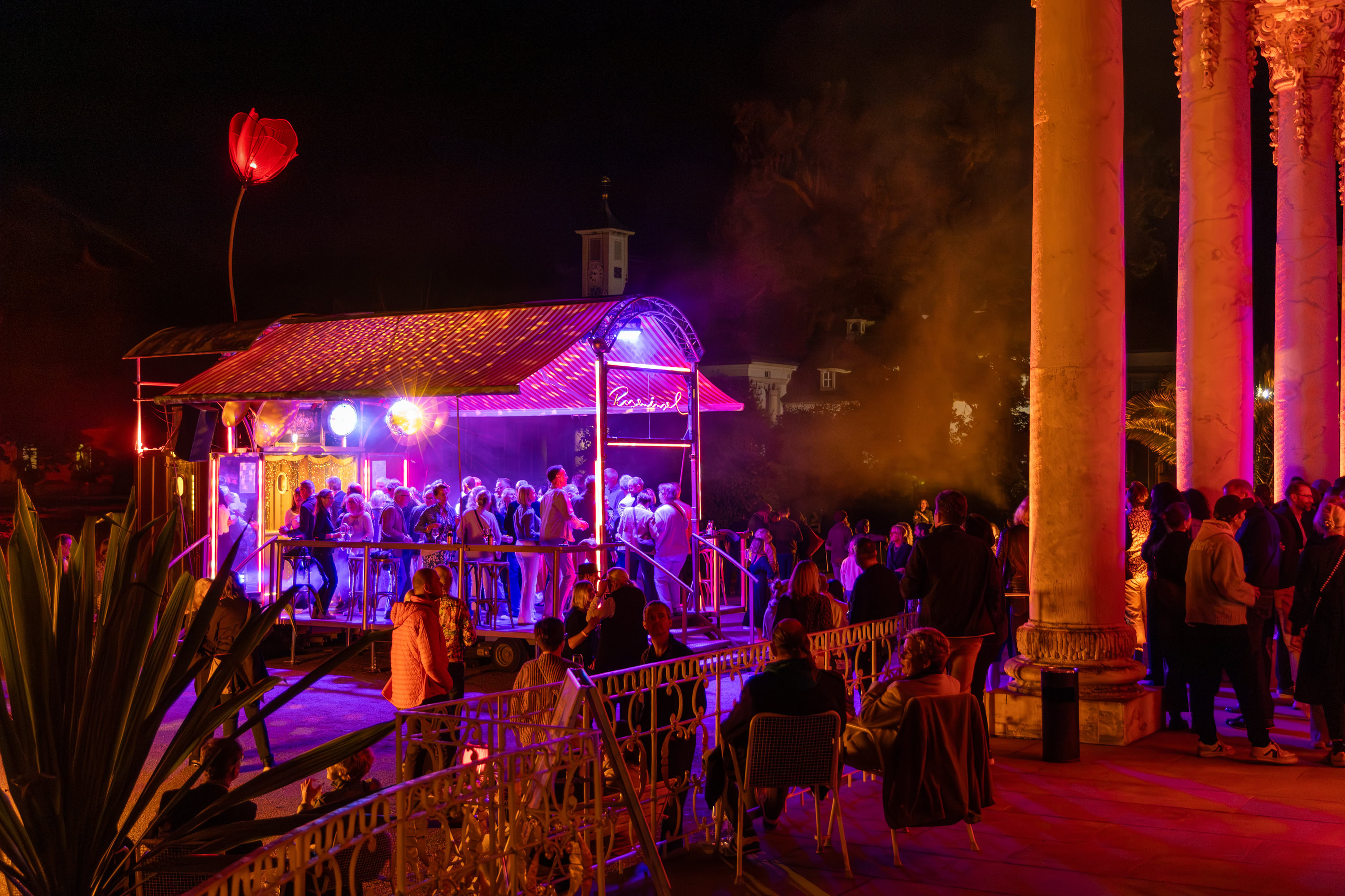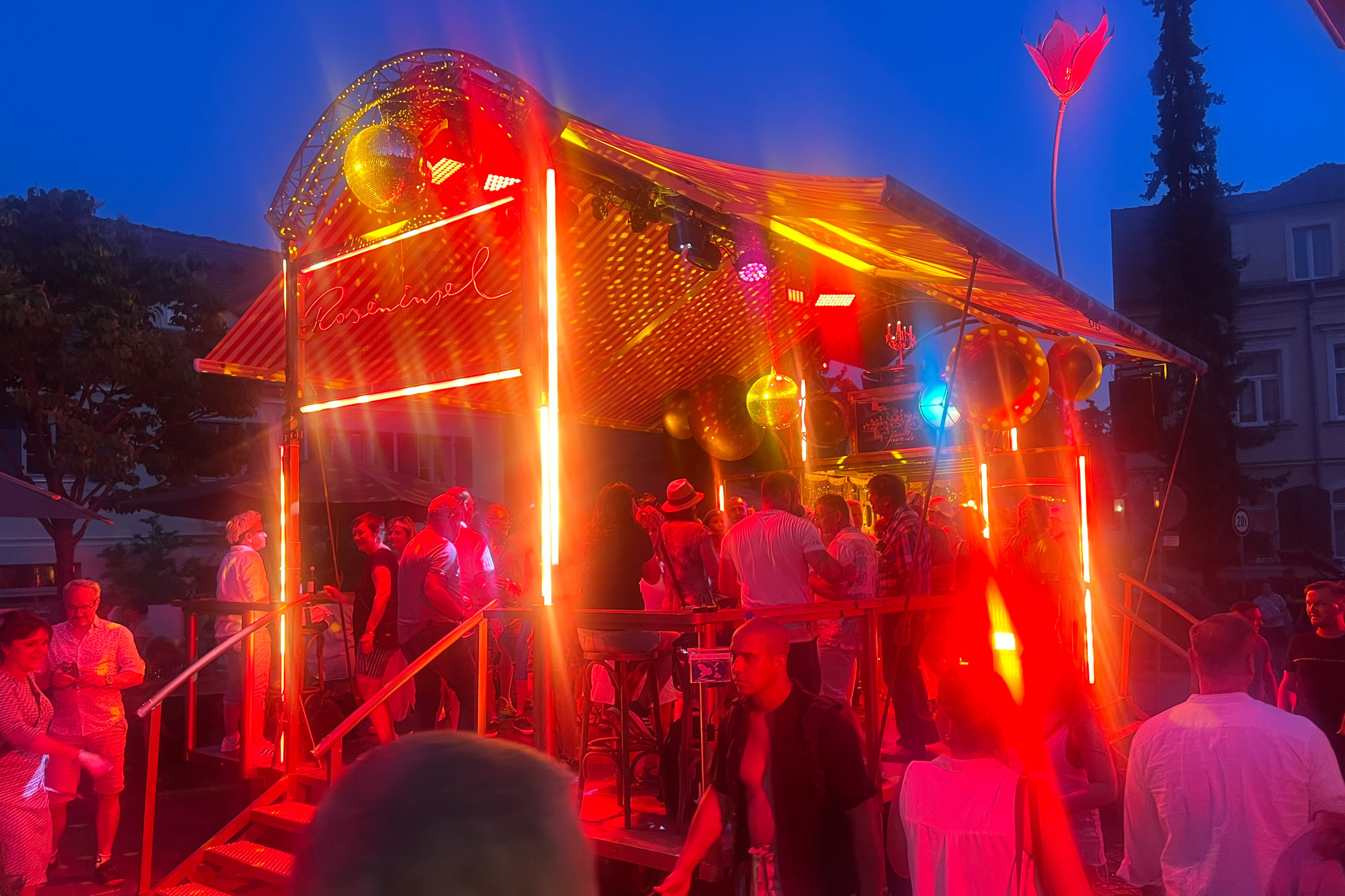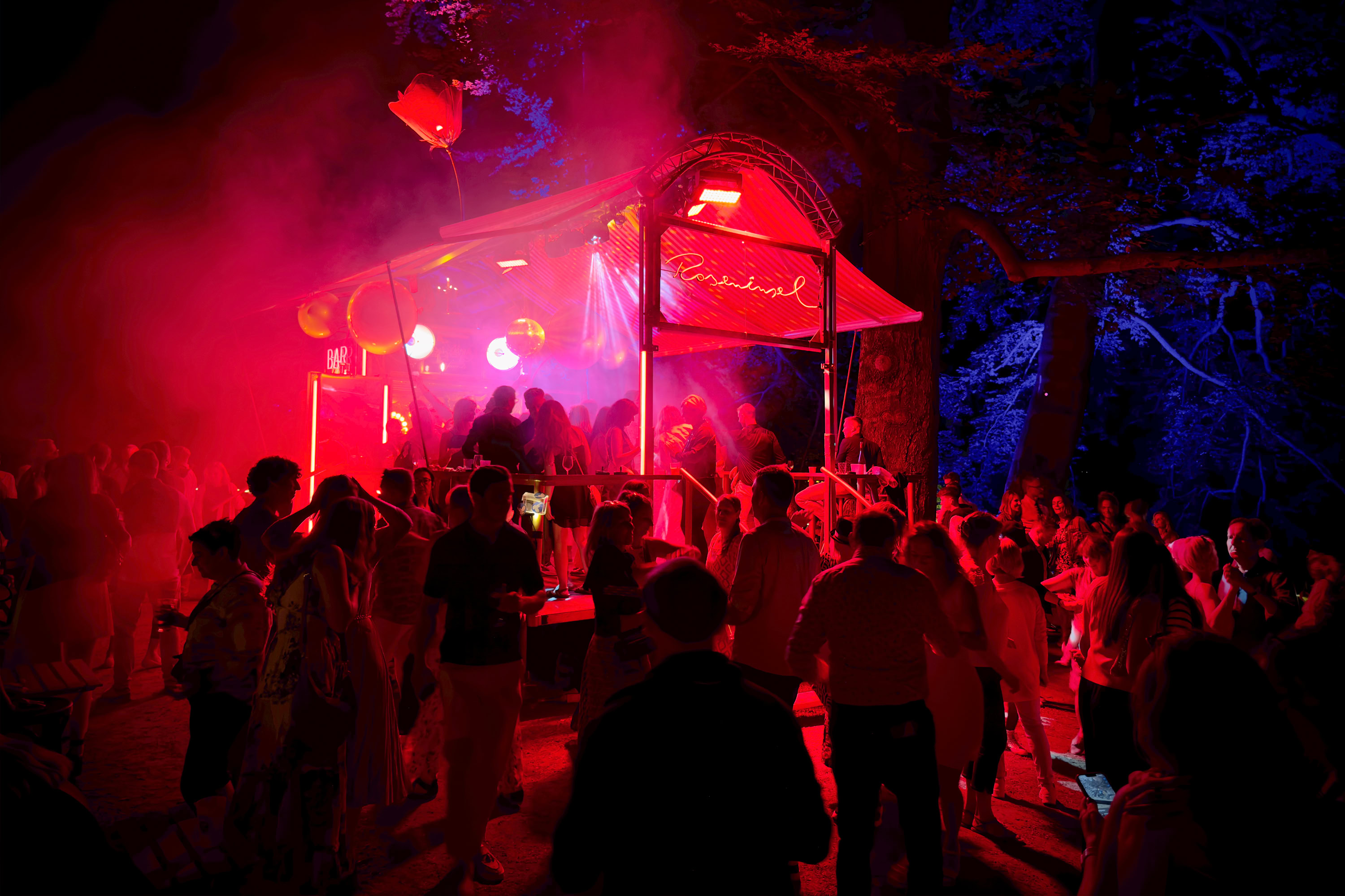 Unsere Roseninsel taucht immer wieder im Meer des Alltäglichen auf und schafft darin beflügelnde Orte. Sie ist eine rollende Bühne mit eigener Technik, ein verzaubernder, mobiler Veranstaltungsort mit Bar, Tanzfläche und ausfahrbarem Dach – flexibel einsetzbar und voll ausgestattet. Mehr über die Roseninsel