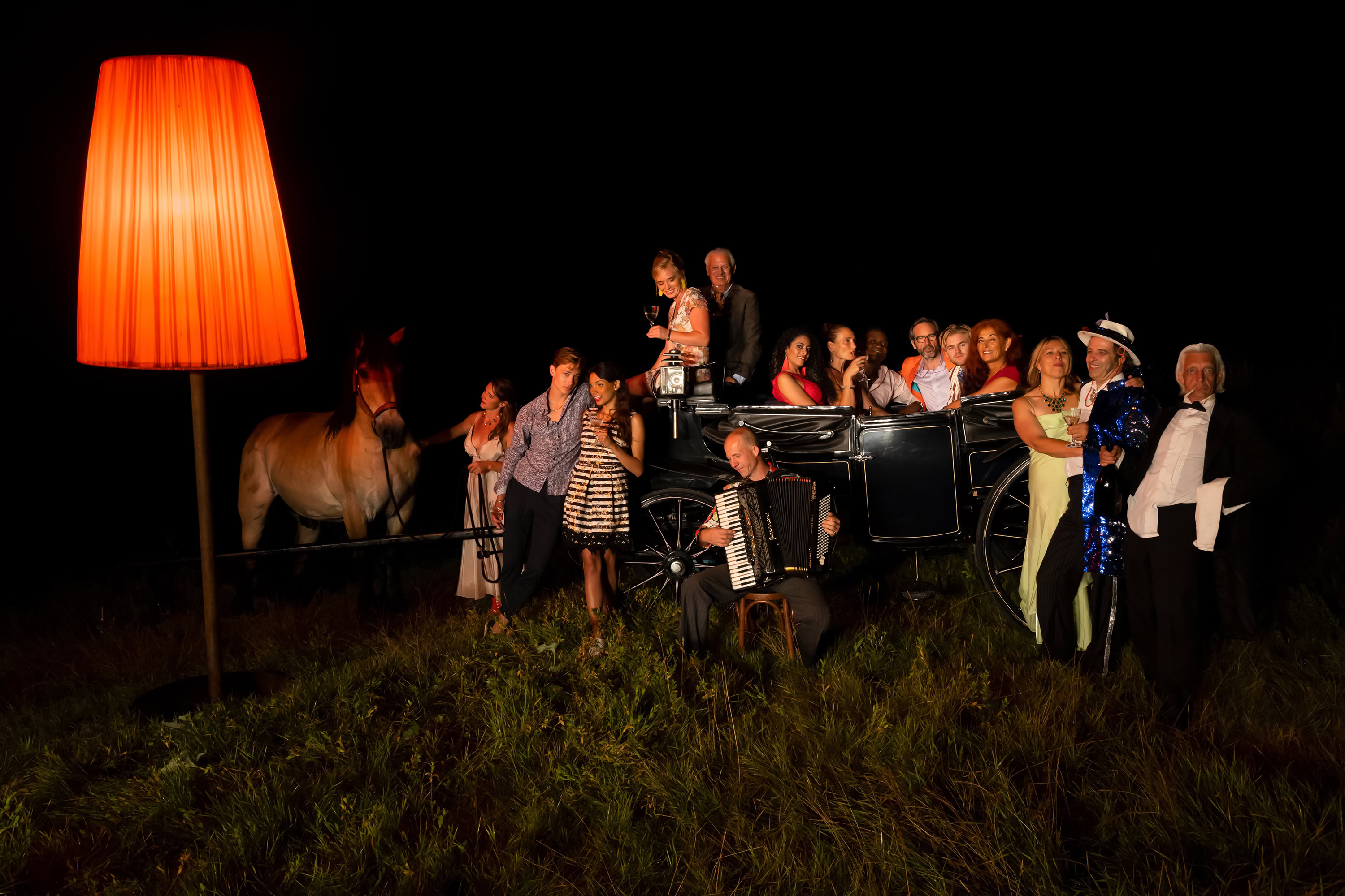 Wir sind Szenenbildnerin, Komponist, Fotografin, Maler, Dolmetscherin, Zeremonienmeister. Wir wissen, Feste beflügeln. Und wir sind Freunde. Wir produzieren für Mode, Theater, Showgeschäft, Museen und Messen; seit mehr als 20 Jahren. Wir sind salonfähig und schlagen über die Stränge.